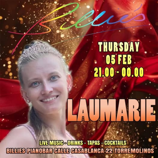Nacida en una familia de músicos, LauMarie dio su primera actuación en vivo con tan solo tres años y desde entonces ha cautivado al público. Con formación clásica en canto, danza, interpretación y piano, ha realizado giras por toda Europa con varias bandas y ahora trae su excepcional talento y radiante presencia escénica de vuelta a la costa malagueña.