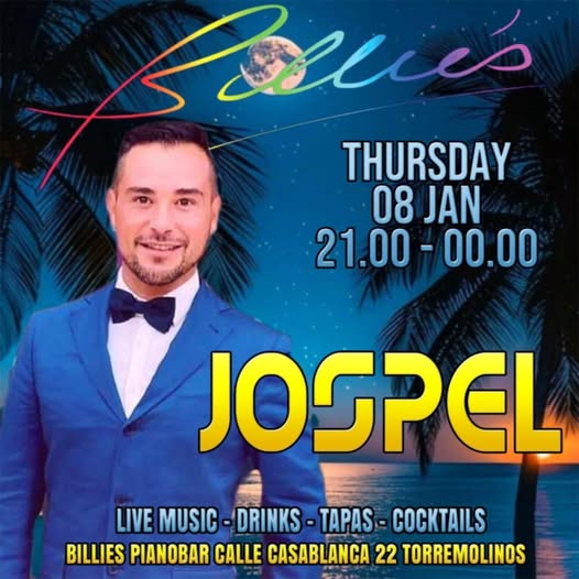 🎶 Mañana por la noche, jueves 8 de enero, recibimos de nuevo al sensacional Giuseppe Peluso, conocido profesionalmente como Jospel, para otra noche inolvidable de música en vivo en Billie’s Piano Bar & Speakeasy. 🎤✨
